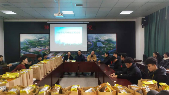 为鼓舞考研员工信心,舒缓他们的心理压力,12月10日下午,公司在体育馆201 召开了2021届毕业生考研慰问会。公司党总支副书记马书军、副经理王继强、孔祥,辅导员谷思缘和吴明放,以及2021届考研学子参加了此次大会。