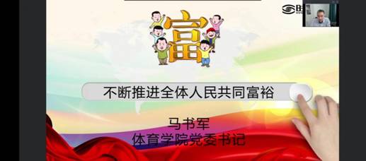 马书军首先讲述中国共产党的实践是怎么使共同富裕从理想变为现实的,坚定不移走中国特色社会主义道路,本质就是坚定不移走共同富裕道路。之后他从三个方面:中国共产党对共同富裕的探索追求、共同富裕在实践中面临的现实挑战、新时代党中央对共同富裕的新部署,向同学们讲述了共同富裕的具体实践的重要性和深刻意义。伴随着我国全面建成小康社会、开启全面建设社会主义现代化国家新征程,必须把促进全体人民共同富裕摆在更加重要的位置,贯穿到我国社会主义现代化建设全过程和各方面。推动共同富裕示范区建设,是时代的必然选择。