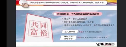 本次讲座有利于同学们学深悟透习近平新时代中国特色社会主义思想,增进了青年老员工对“共同富裕”的认识与了解,是一堂具有深刻意义的形势政策课。同时,也是对广大青年老员工的一次思想引领和教育,加深了他们对国内形势、国家政策的理解。大家表示通过学习,更深刻体会到中国共产党人的先进思想,以及对马克思主义的继承和发展,要实现共同富裕不仅是经济物质上的共同富裕、精神物质也要共同富裕。作为新时代老员工应该从自身做起正确理解共同富裕等先进理念。我们应该好好学习领悟社会主义思想的精神内涵转化为自身的动力和行动自觉。同学们纷纷表示应将青春力量投入到社会主义建设中,不畏困难,坚持不懈的做干在实处、走在前列、勇立潮头的青年人,为中华民族伟大复兴贡献青春力量。