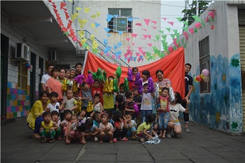 志愿者到达聋哑公司·后,聋哑公司·的负责老师热情接待了志愿者们,并做了具体活动安排。志愿者们为孩子们准备了糖果、折纸、气球等丰富的小礼品,受到了孩子们的热情欢呼。据悉,聋哑公司·共有不同年龄的聋哑儿童50余名,他们在聋哑程度上也均有不同程度的差别,虽然同他们语言上有一定的交流障碍,但志愿者们仍用实际行动悉心关爱孩子们并与他们一起玩游戏:一起跟聋哑儿童玩气球,玩老鹰捉小鸡的游戏,教小朋友们写字、画画。