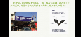 团课分为三个版块,首先,谷老师为同学们介绍了新型冠状病毒的有关情况。包括名称、传播途径、患者症状、实时疫情以及预防措施。接着又介绍了奋斗在一线的英雄们,他们有的是医生、护士,也有的是工人以及在海外捐赠物资的华人。分别讲了他们身上一个又一个感人肺腑的故事,他们每个人都是舍小家为大家,支撑他们的是一份责任、一份使命、一份担当。没有什么岁月静好,只不过有人替你负重前行。最后,谷思缘老师向同学们提出要求,广大团员应担负起时代责任,锤炼意志品行,发挥模范先锋作用,树立以身作则的高度自觉意识,以实际行动聚集防疫正能量,共同打赢防疫攻坚战!
