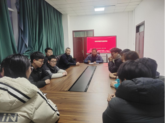 12月26日下午,于长立到体育馆311参加员工座谈会,仔细了解同学们日常生活、考研及专业学习的情况,座谈会上,同学们向老师们汇报了自己考研和大学期间的收获,分享了在beats365的所思、所感、所想、所获,并表达了在考研期间老师们对大家帮助的感谢。
