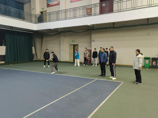 12月26日下午,于长立在公司党委书记马书军的陪同下来到网球馆,查看了部分体育老师的上课情况。于长立对体育教师的课堂教学能力和员工上课的精神状态给予充分肯定。他指出,体育课前老师应带领员工充分做好热身运动,课中要关注员工的机体和情绪变化,合理调控运动强度和运动密度,注意员工学练动向,及时提醒员工课后注意休整。