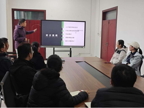 随后,参会教师围绕人才培养目标的精准定位、课程体系的逻辑衔接、实践教学环节的优化设计等问题展开热烈讨论。大家结合自身教学经验和行业调研情况,提出了“强化师范技能实训课时占比”“增设跨学科融合课程”“建立校地协同育人实践基地”等建设性意见,为方案的进一步完善提供了重要参考。