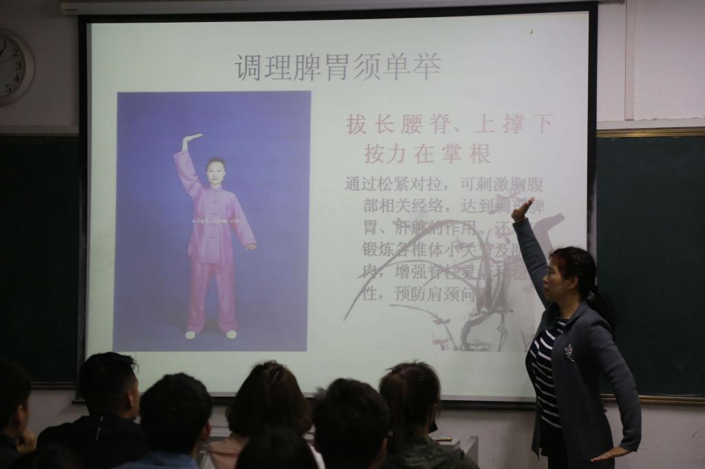 在讲座中,李秀霞教授分别就八段锦的功法源流、功法特点、动作难点等做了详细的讲解,并指出长期习练八段锦,可以平衡阴阳、调和气血、疏通经络、培育真气,从而达到扶正祛邪的作用。通过讲座,加深了同学们对民族传统体育健身方式的了解,为大家学好健身气功服务社会提供了指导。