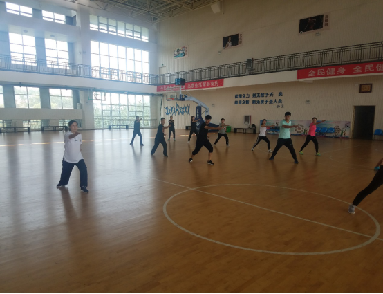 随后,民传教研室郭利利、何春华两位老师对与会教师进行了大学体育一课程的教学内容培训,各位老师不畏高温,在篮球馆进行了少年拳、少林拳等教学内容练习。