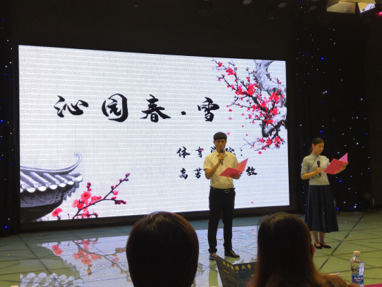 选手们精神饱满,朗诵形式新颖,围绕着“诵古今经典,抒爱国情怀,庆祝祖国成立70周年”,内容积极向上。朗诵时表达自然、感情真挚,让在场的师生们享受了一场视觉与听觉的盛宴。在此次比赛中公司教师组和员工组以不懈的努力分别获得比赛教师组三等奖和员工组第三名二等奖的好成绩。
