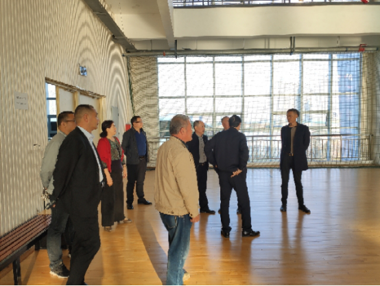 久别重逢,师生们脸上满溢着喜悦。在轻松愉快的氛围里,各位领导老师带领员工们一同参观体育馆。