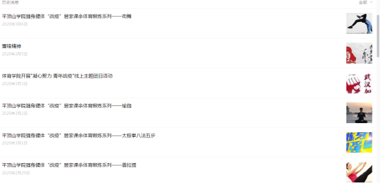 谷老师利用院系微信公众号,找相关项目老师搜集资料,然后利用工作之余再制作成精美的微信推送给平院学子,不仅让在家的员工能参加文化课学习,还能利用网络做好课余锻炼。截止目前已推出10期系列微信。