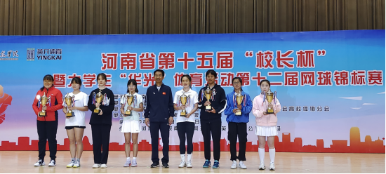据悉,本次比赛是河南省高校网球最高级别的赛事,教育厅和河南省员工体育总会等领导全程对比赛进行监督,并在颁奖典礼上为运动员们颁奖。