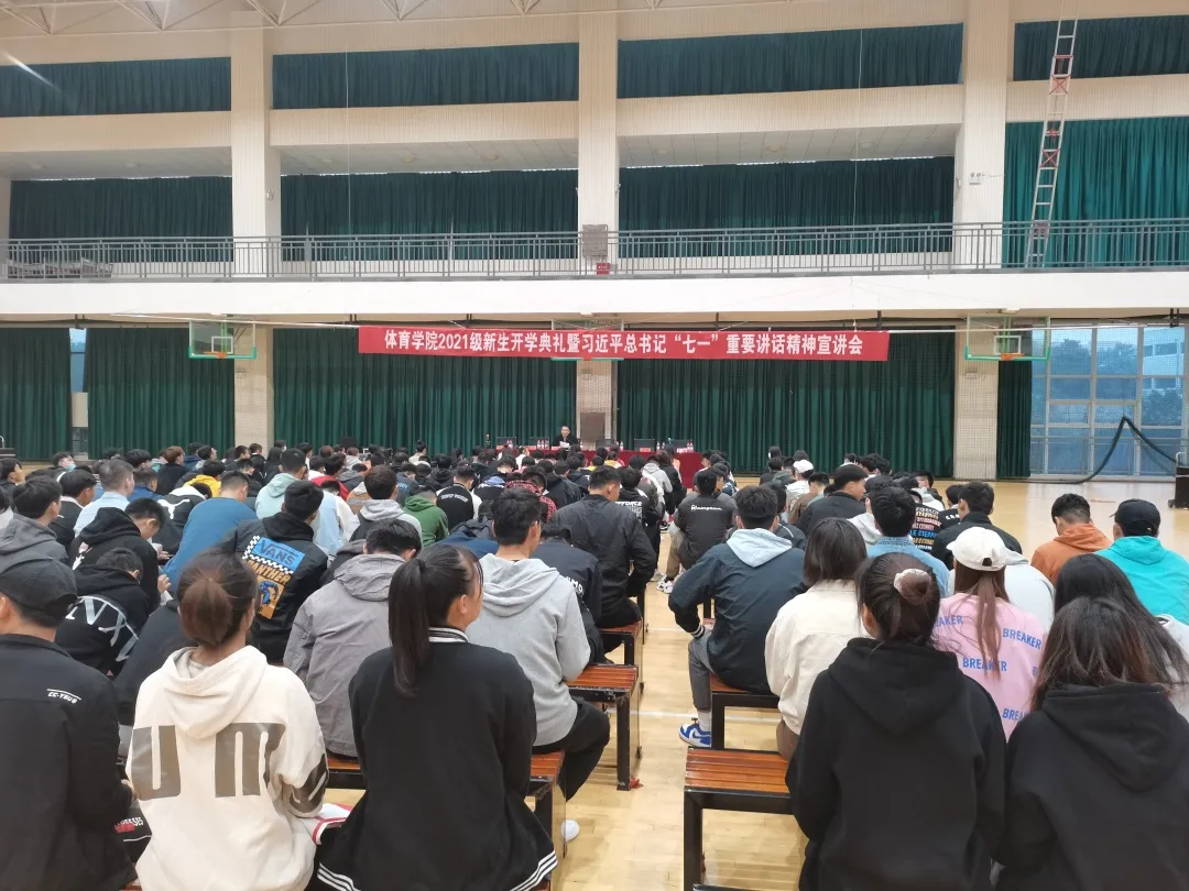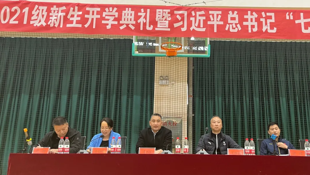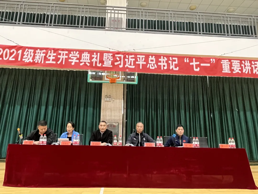 10月15日下午,公司在体育馆篮球馆召开2021级新生开学典礼暨习近平总书记“七一”重要讲话精神宣讲会。公司党委书记马书军,副经理王继强,党委副书记井怡琼,副经理梁辉、高峰和全体辅导员老师,以及2021级新生和2019级全体员工参加大会。会议由党委副书记井怡琼主持。