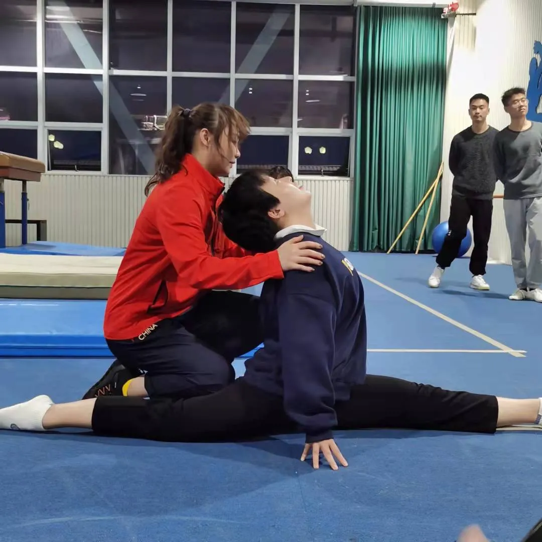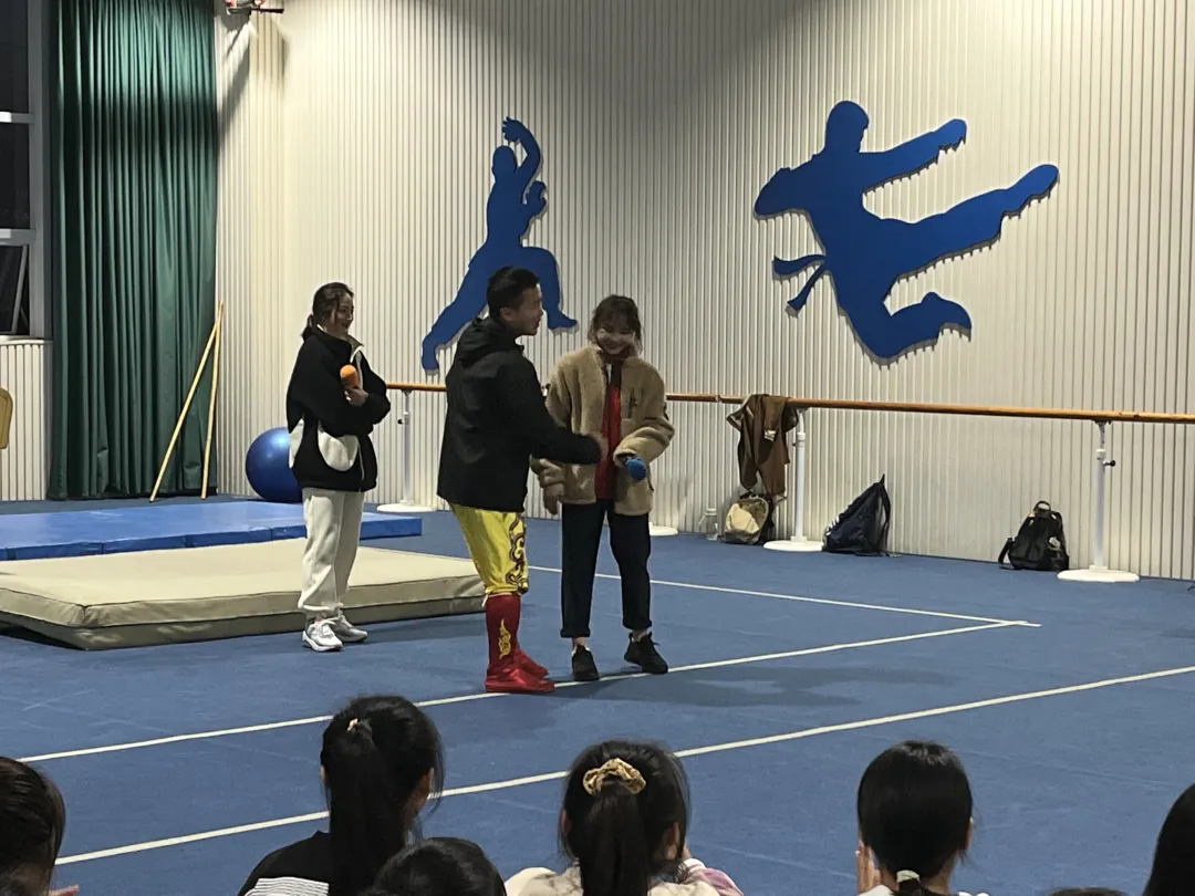 第三阶段,刘津茹向同学展示体操动作,并邀请公司体操专选同学一同学习。芦玉菲向大家展示了腰腹力量锻炼、韧带拉伸等动作,并手把手进行小跳步教学。