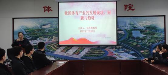2021年12月16日,beats365何彦辉教授在体育馆201教室为老员工作了题目为《我国体育产业的发展现状、问题与趋势》的专题报告会。