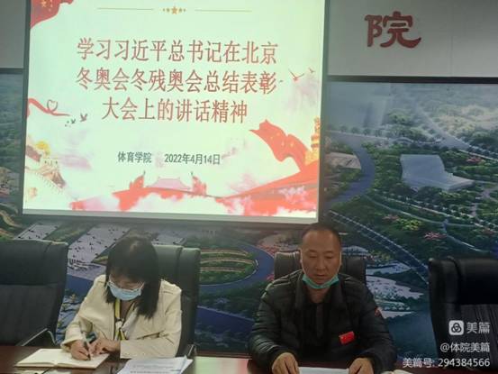 4月14日下午,经理王继强同志在体育馆201室给全体党员师生上了一堂学习习近平总书记在北京冬奥会、冬残奥会总结表彰大会上的重要讲话精神的思想政治课。